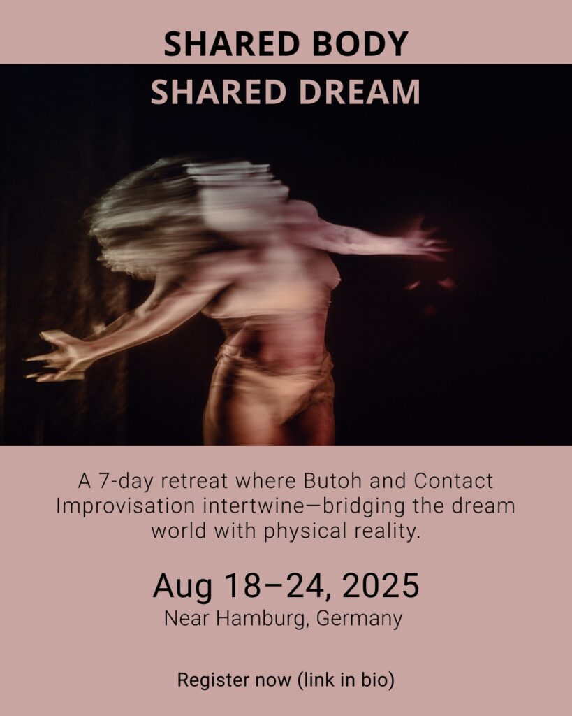 Inspired by Butoh masters Tadashi Endo and Atsushi Takenouchi, I encourage participants to find their own original dance — the shining flower within each of them. Through different somatic approaches, we work on clearing the channels, entering an empty space, and allowing something greater than us to move through the body.